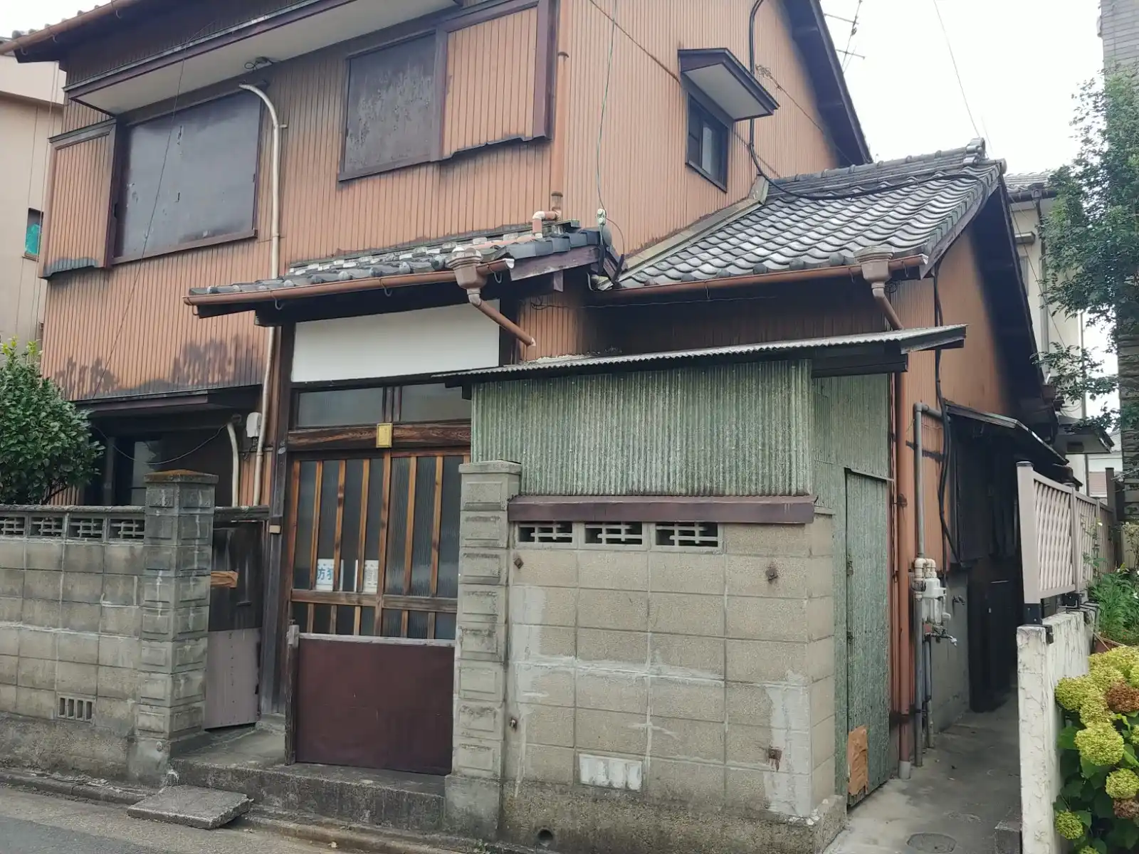 築40年の木造二階建ての家屋(30坪)と渡り廊下で繋がれた奥にある築25年程の木造二階建ての家屋(40坪)ですが、現在空き家となっており更地にして売却するご計画でした。