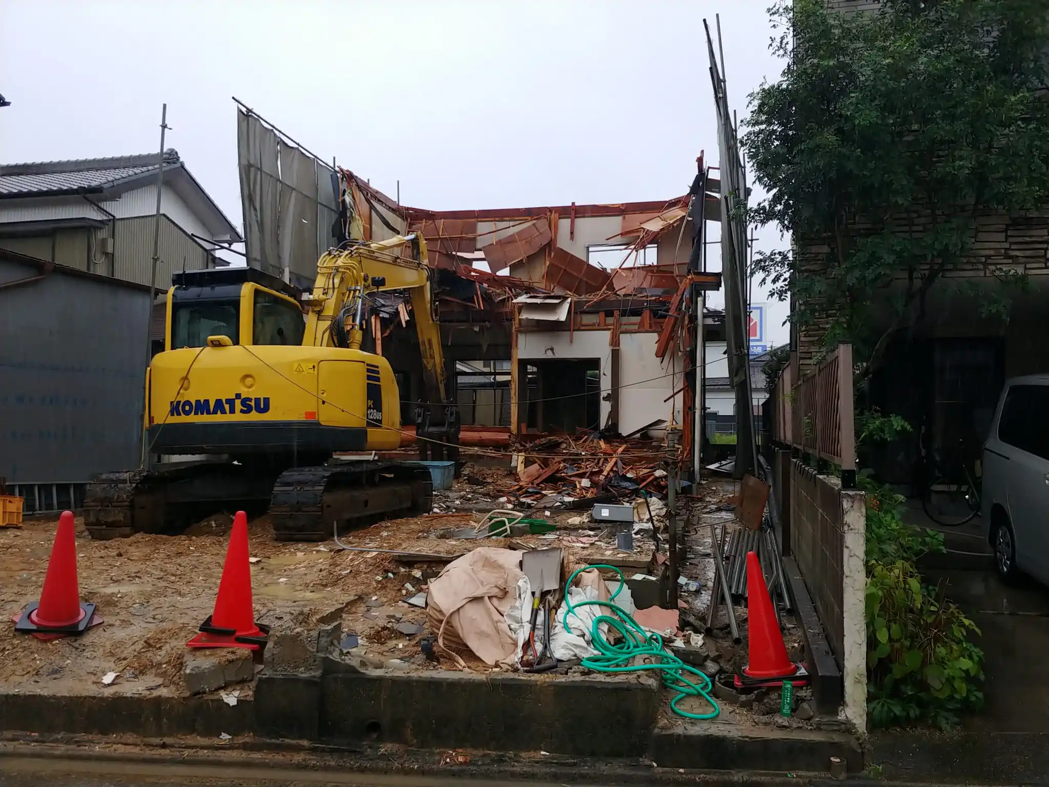 工事に当たっては重機が入る敷地が無い為、重機が入るスペースが確保出来るまでは費用が掛かりますが手壊し作業となることをアドバイスさせていただきました。