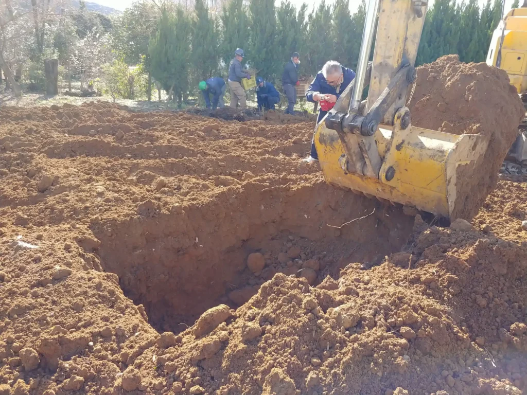 弊社で解体を行った場合、基本的には試掘作業(何箇所か50cm位の深さまでは掘り、土の中に何か埋まってないかを確かめる)を行っています。